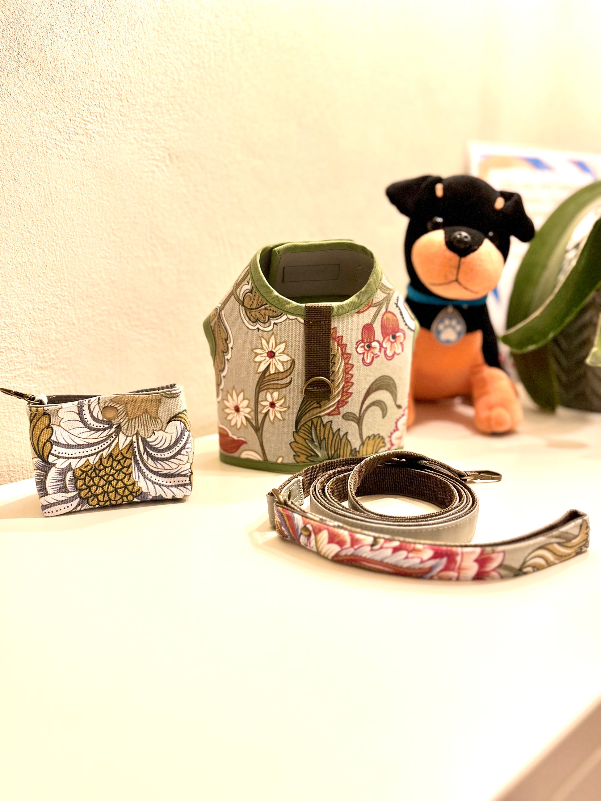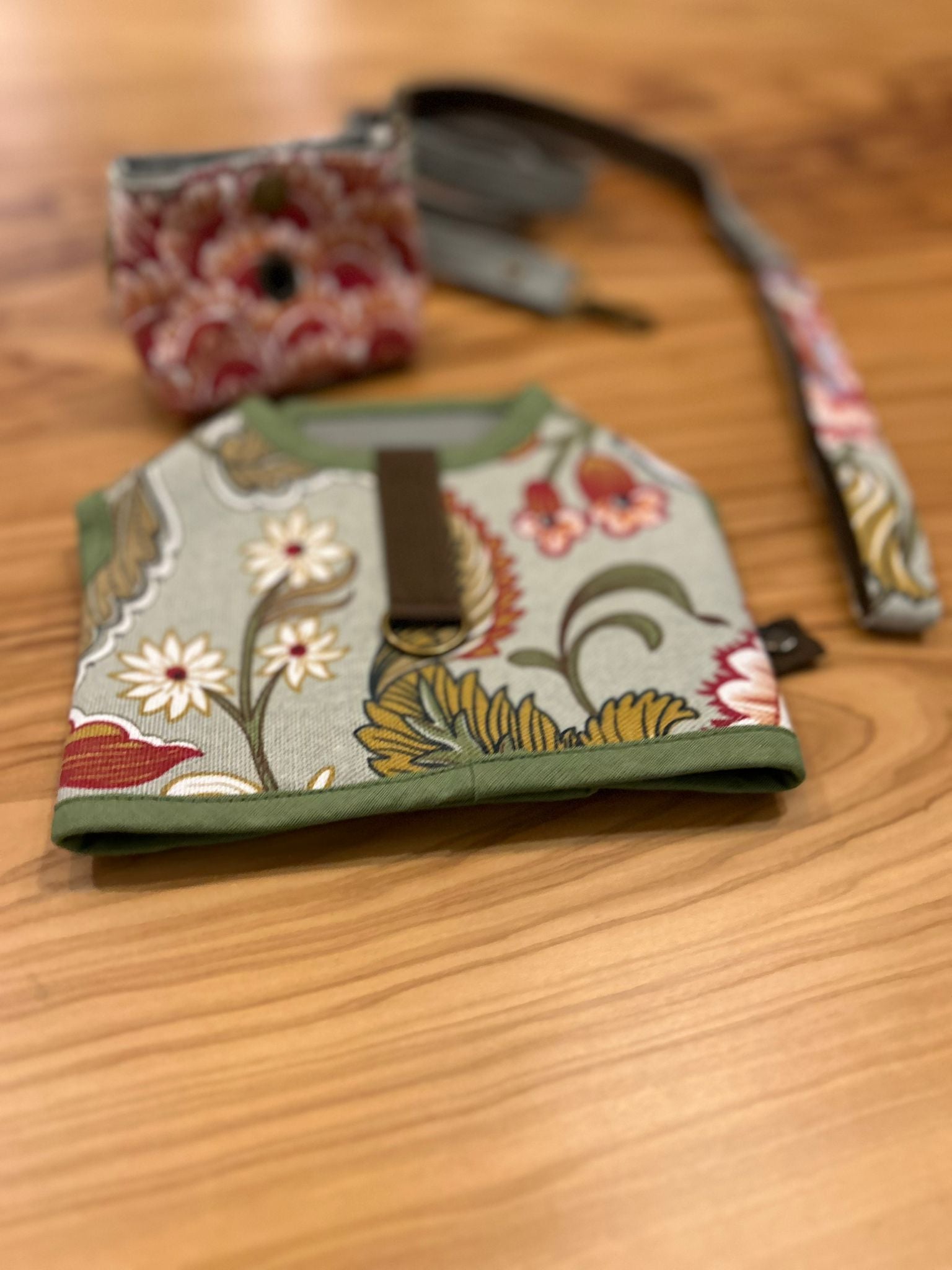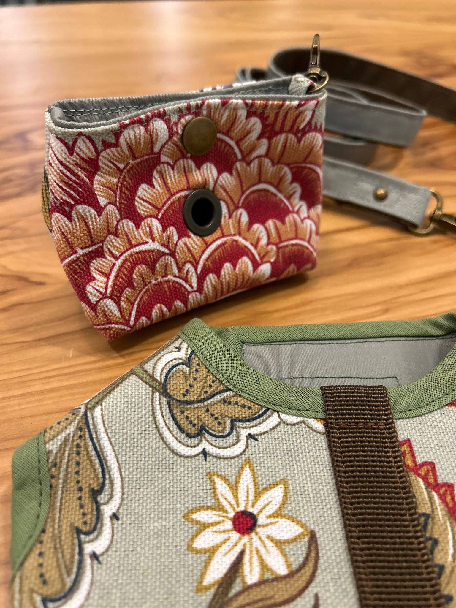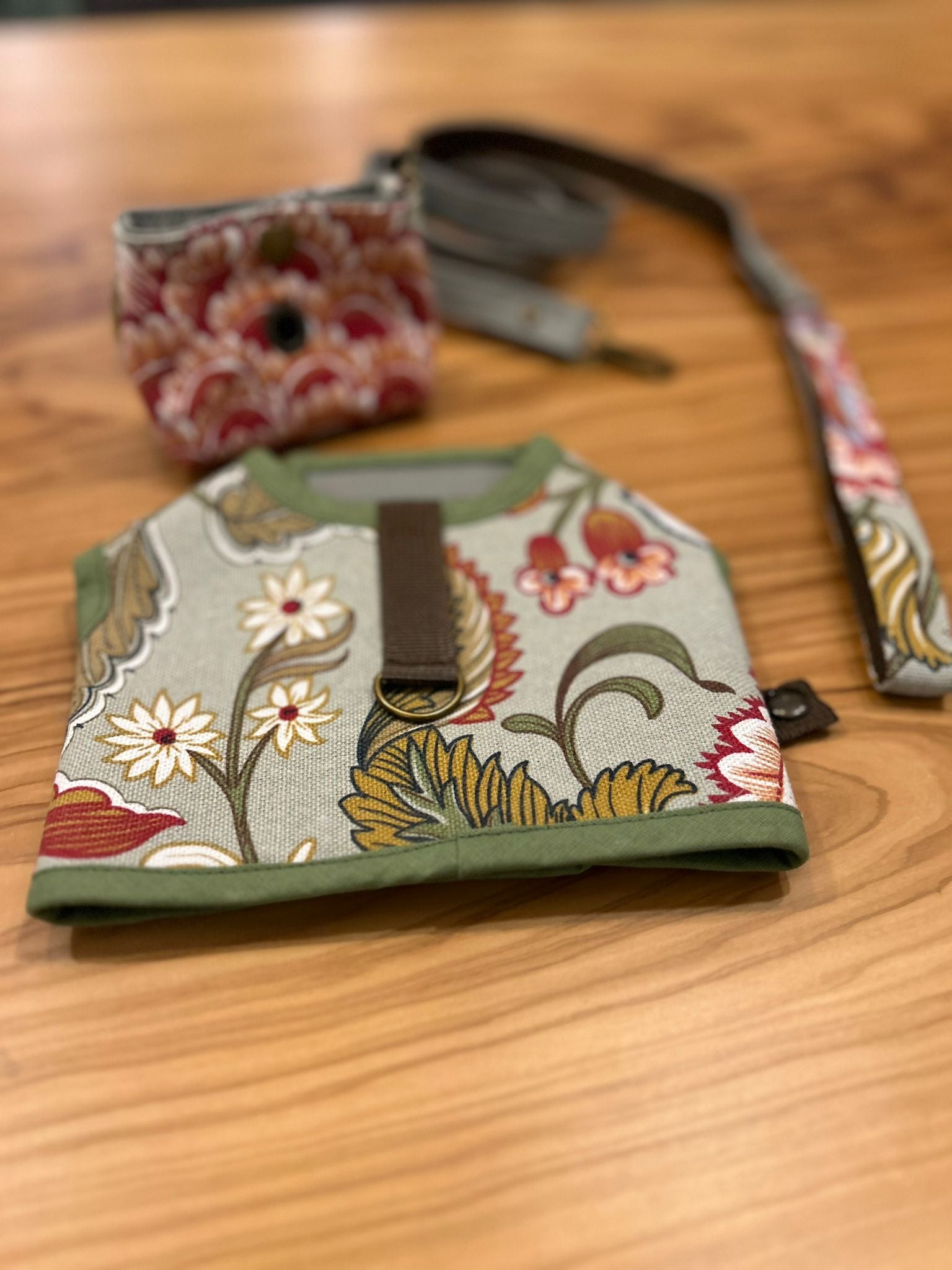 Questo set da passeggio presenta un tessuto resistente con motivi floreali e un interno impermeabile. È il compagno perfetto per qualsiasi attività all'aperto, fornendo sia stile che protezione contro la pioggia.