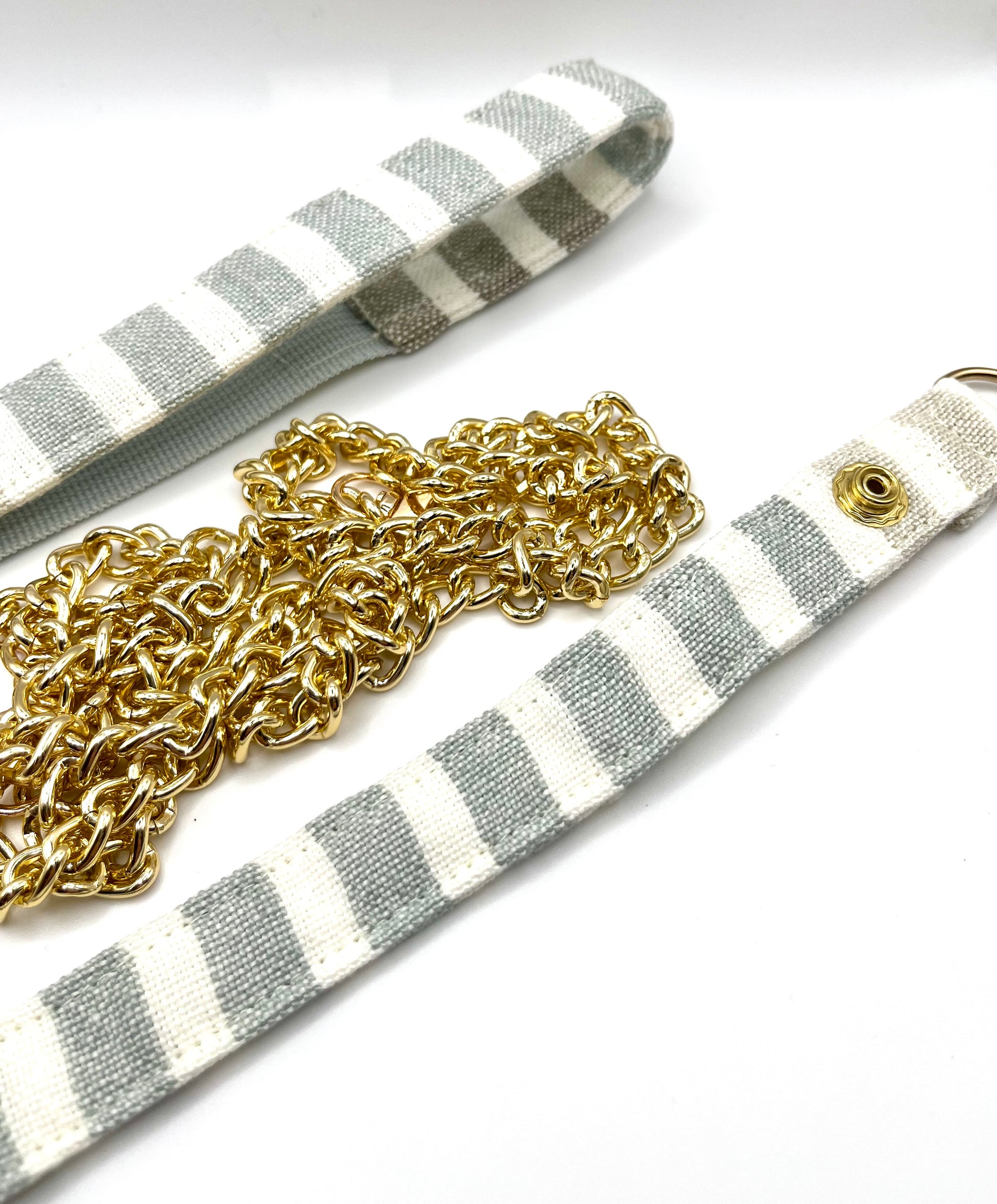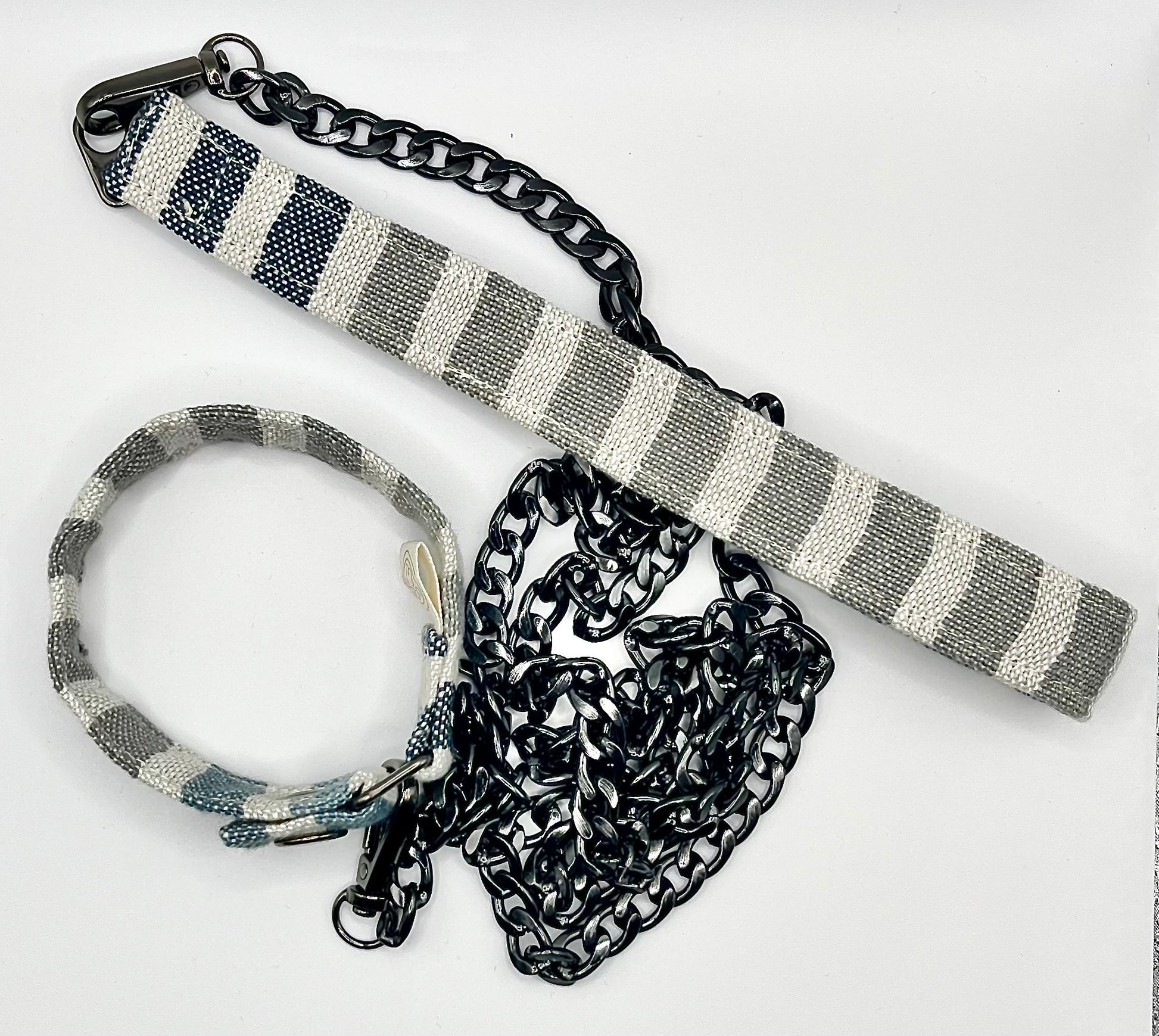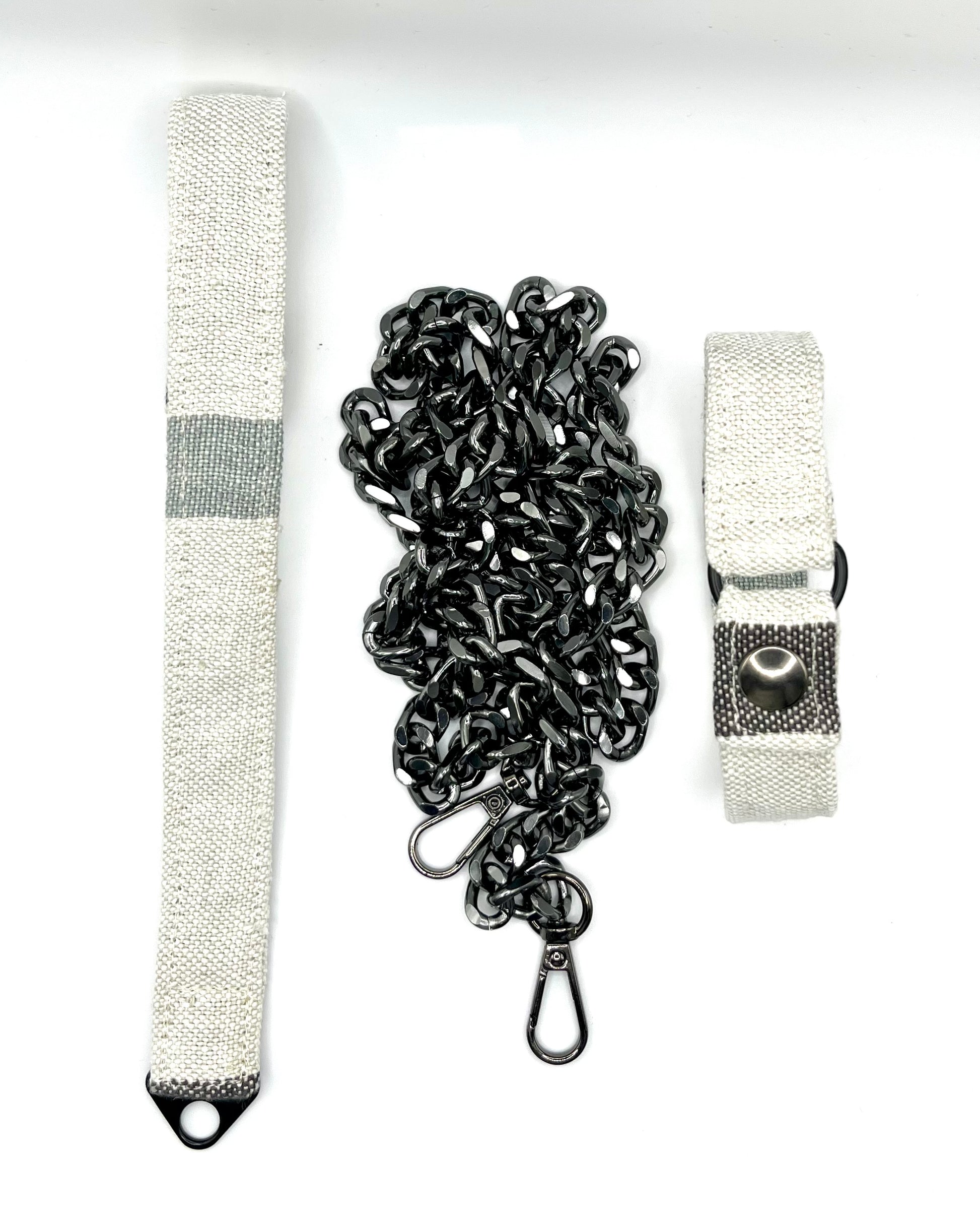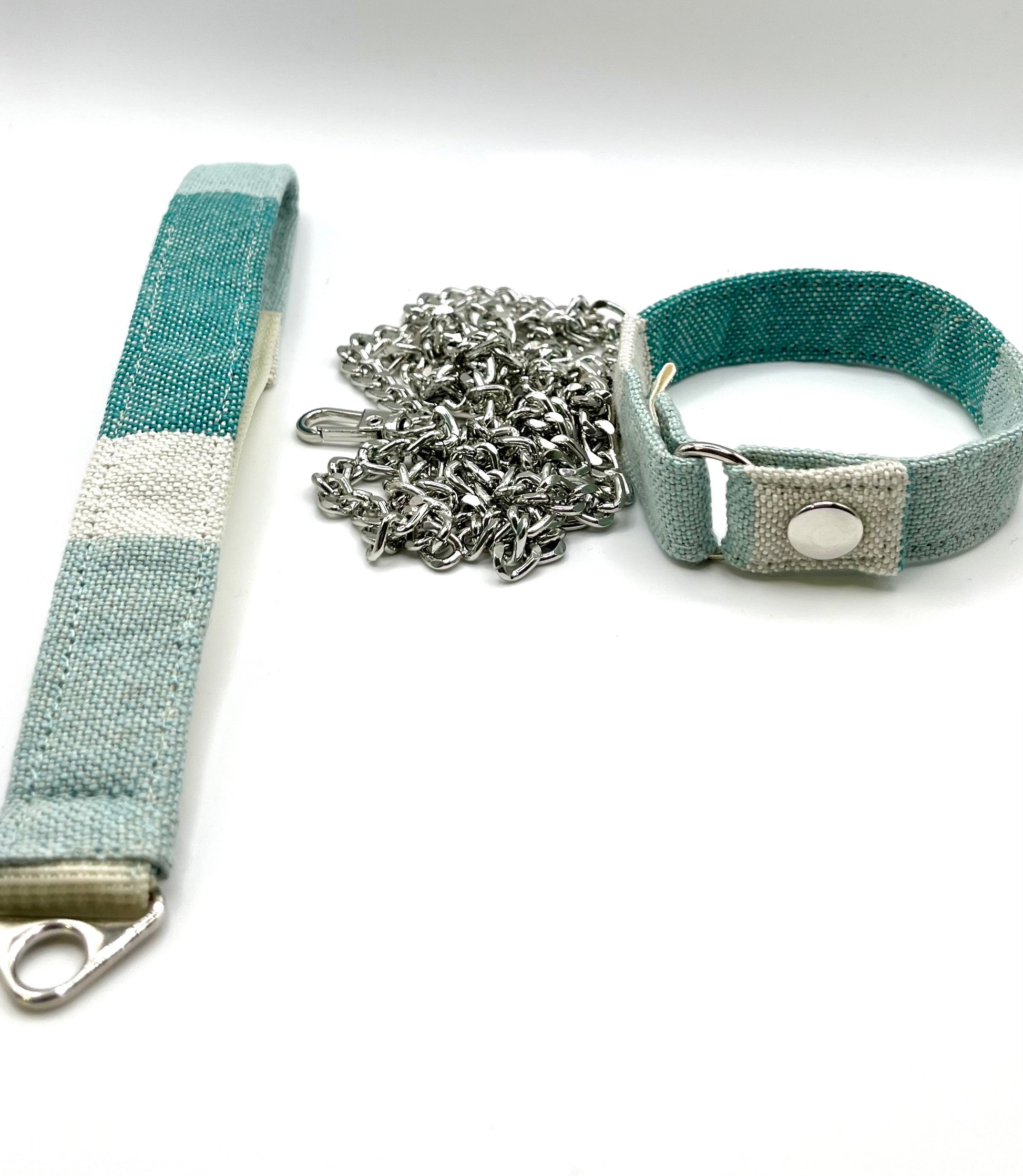 🐾 Guinzaglio coordinato con mamico in lino abbinato al collare e la lunghezza in catena metallica (leggera ma resistente), per una presa sicura e uno stile ricercato.