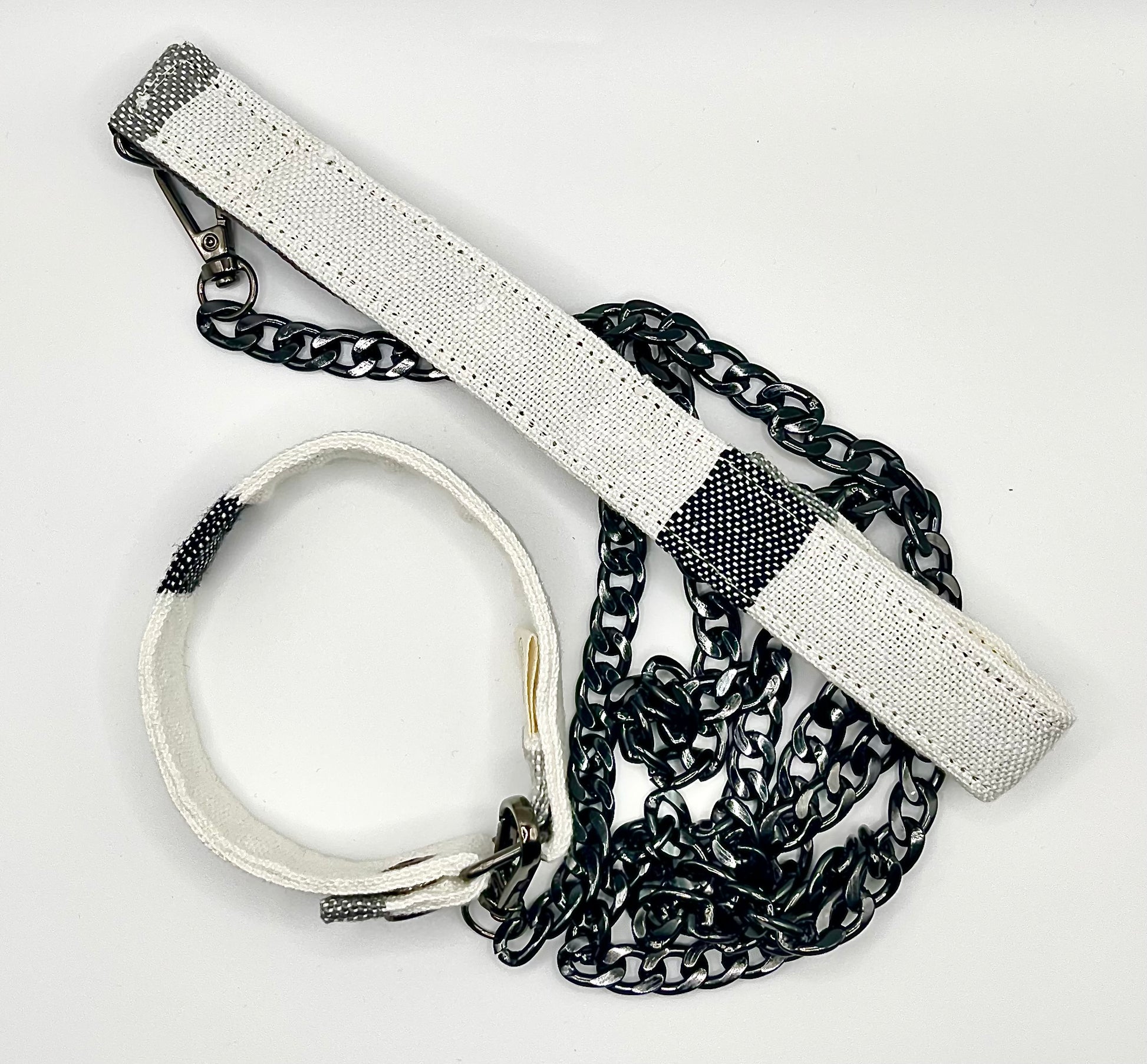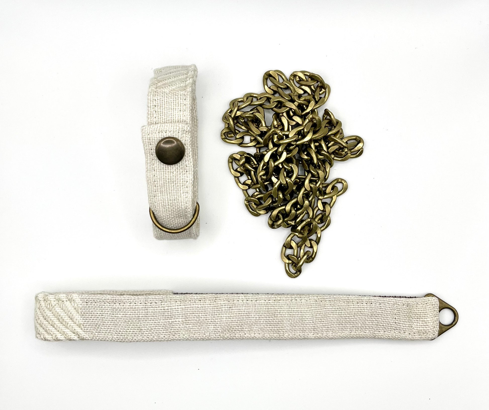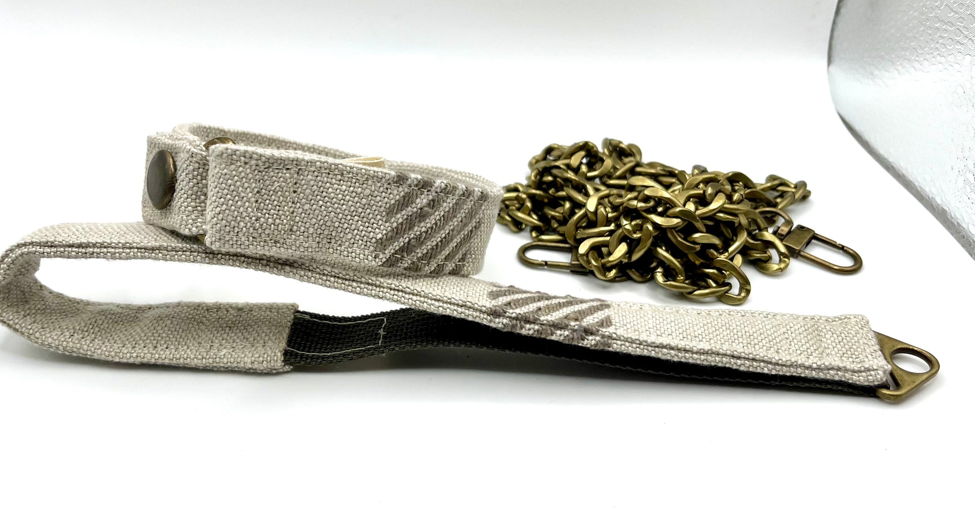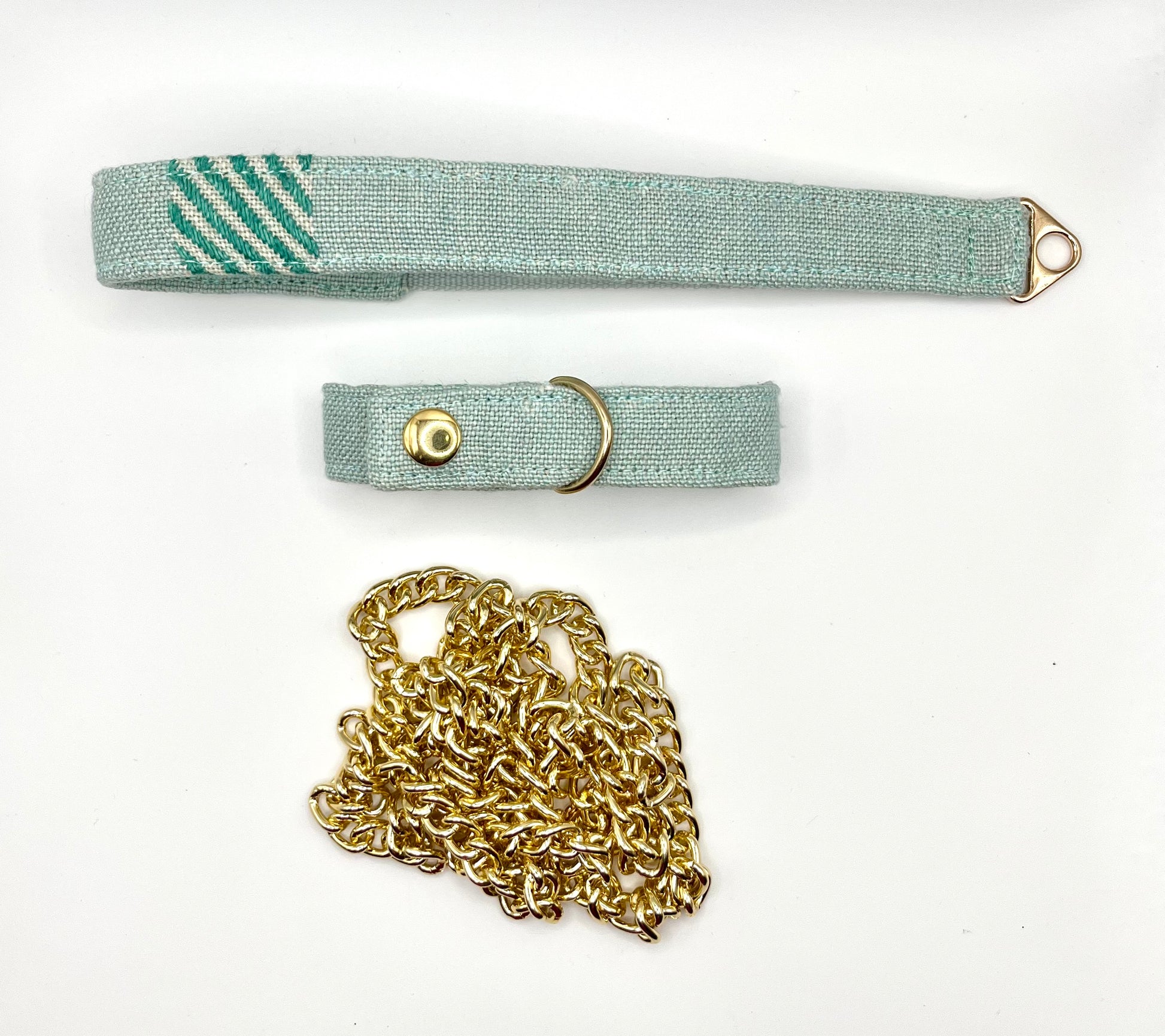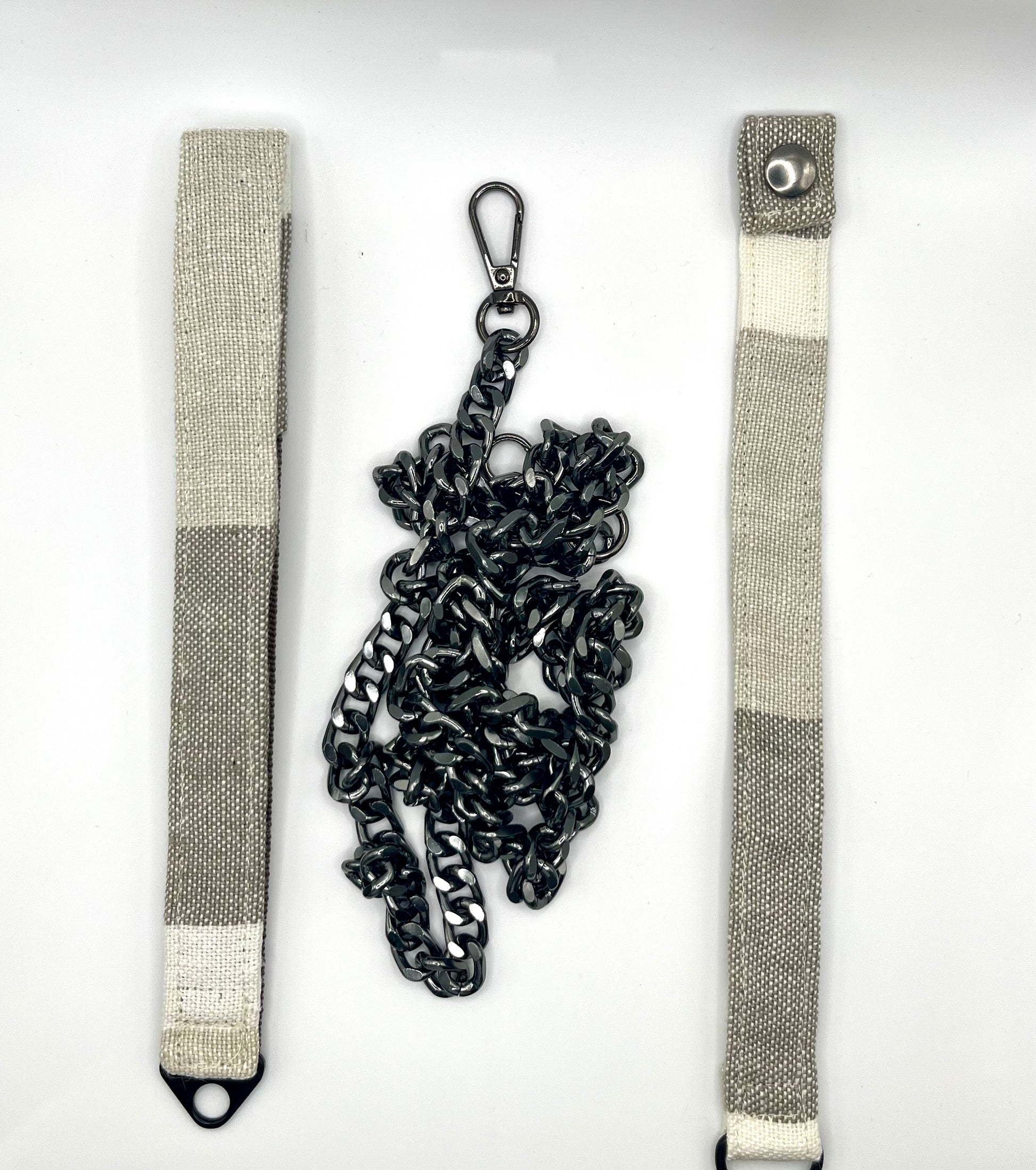 🐾 Guinzaglio coordinato con mamico in lino abbinato al collare e la lunghezza in catena metallica (leggera ma resistente), per una presa sicura e uno stile ricercato.