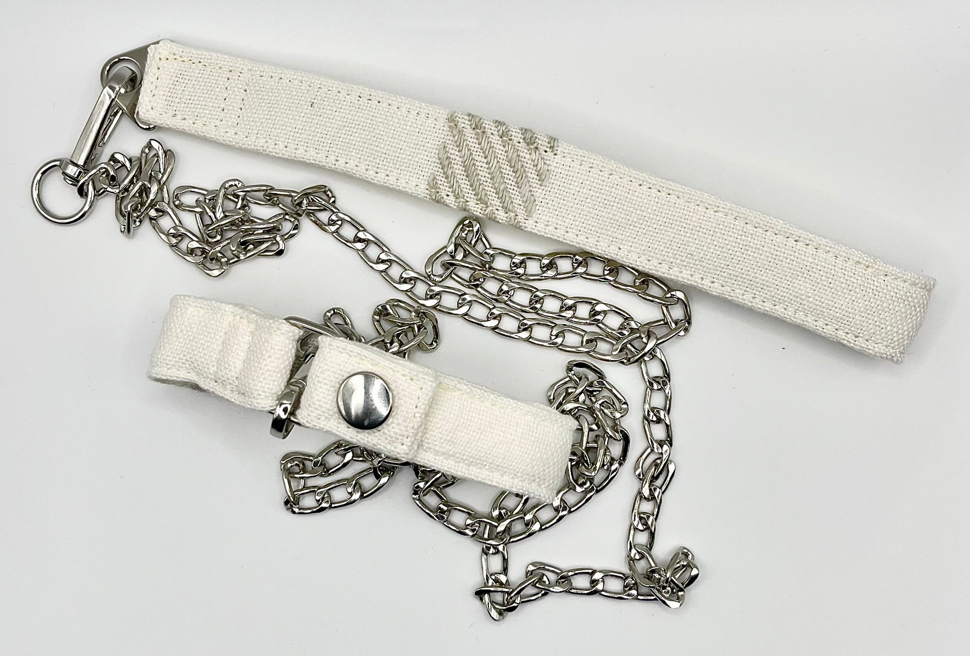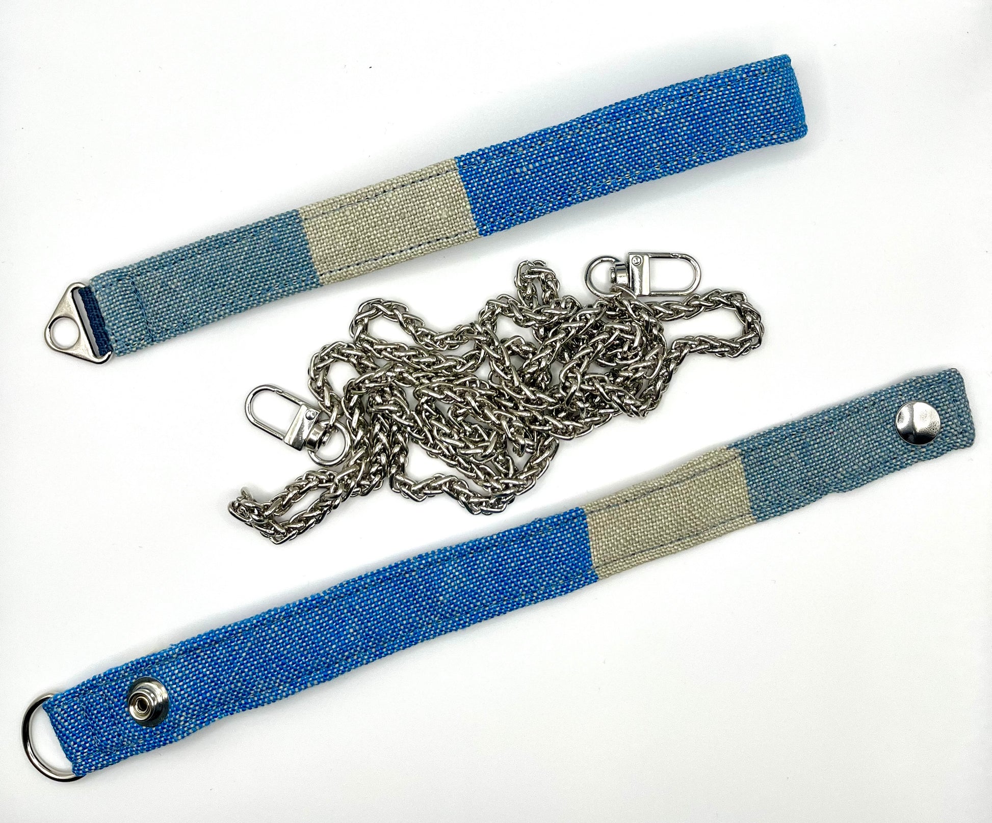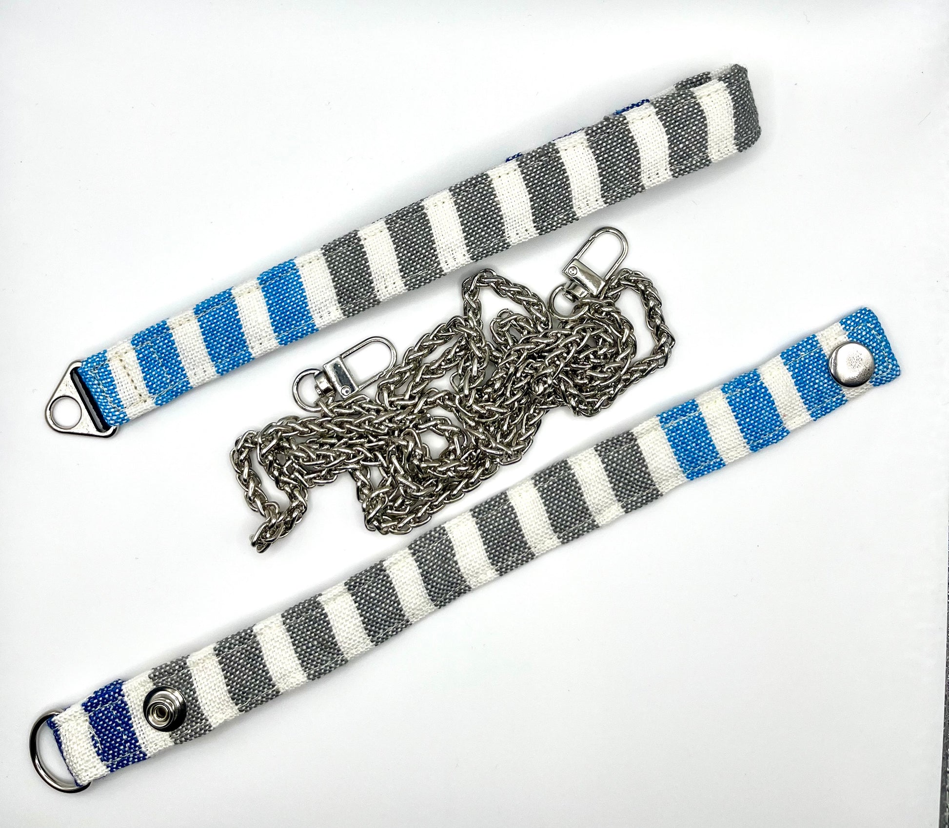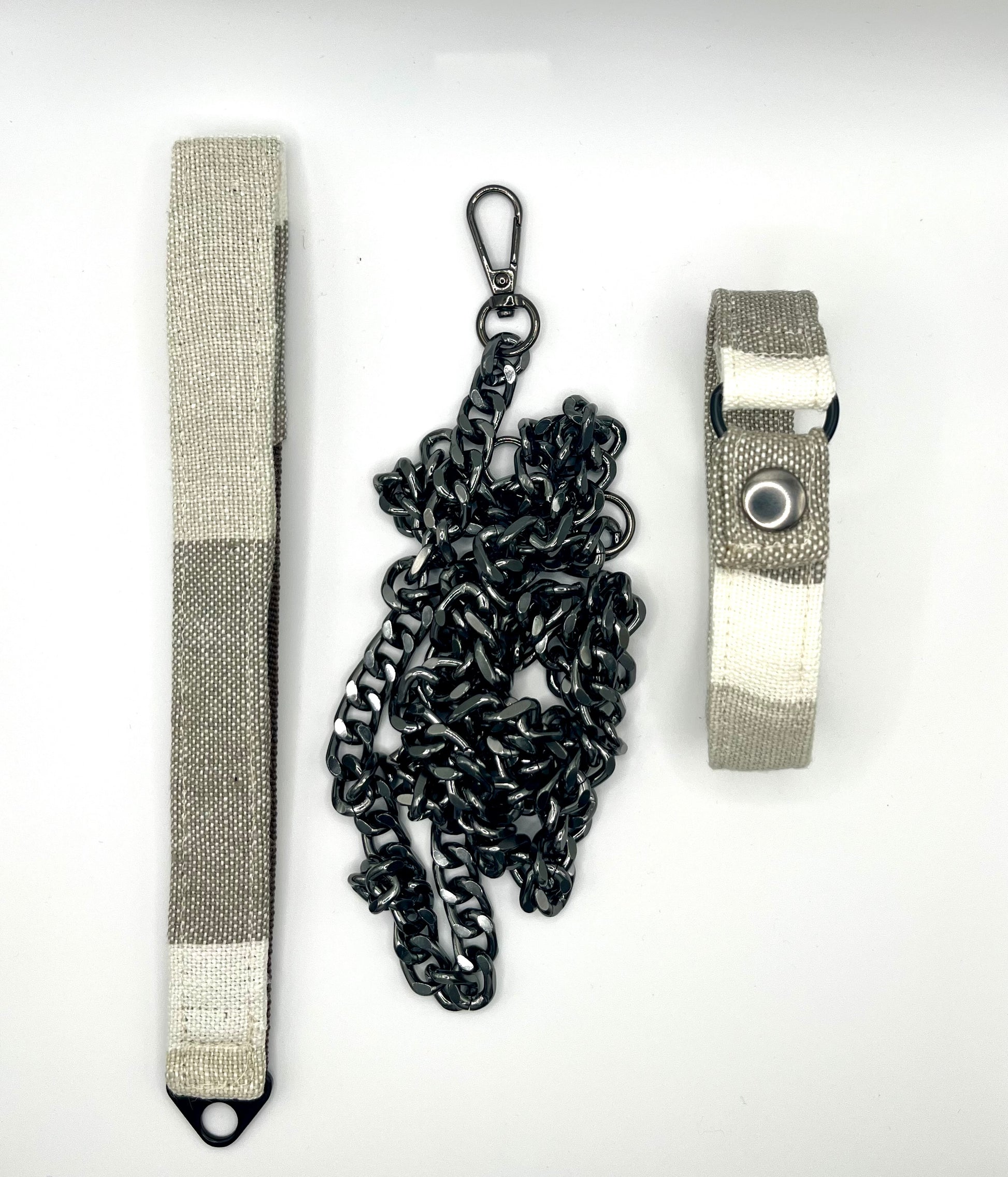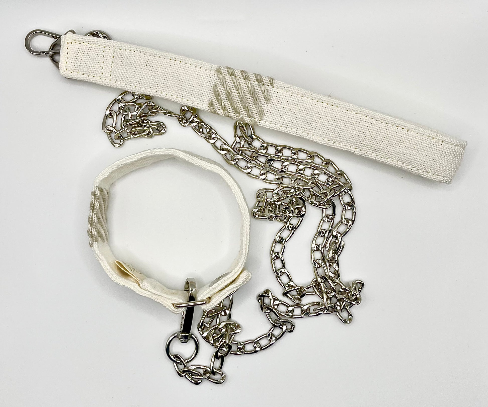🐾 Guinzaglio coordinato con mamico in lino abbinato al collare e la lunghezza in catena metallica (leggera ma resistente), per una presa sicura e uno stile ricercato.